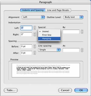 How to make a hanging indent for your list of works cited: