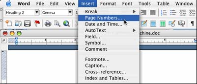 Now go down to the first page of your essay and click somewhere in the text to put your cursor on this page. Choose "Page Numbers " from the pulldown menu under "Insert."